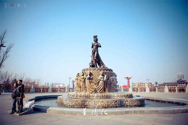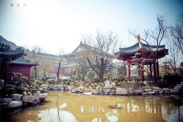 华清池,亦名华清宫,位于陕西省西安市临潼区骊山北麓,西距西安30公里,南依骊山,北临渭水,是以温泉汤池著称的中国古代离宫,周、秦、汉、隋、唐历代统治者,都视这块风水宝地为他们游宴享乐的行宫别苑,或砌石起宇,兴建骊山汤,或周筑罗城,大兴温泉宫。白居易、杜牧等诗人在诗作中均有提及。