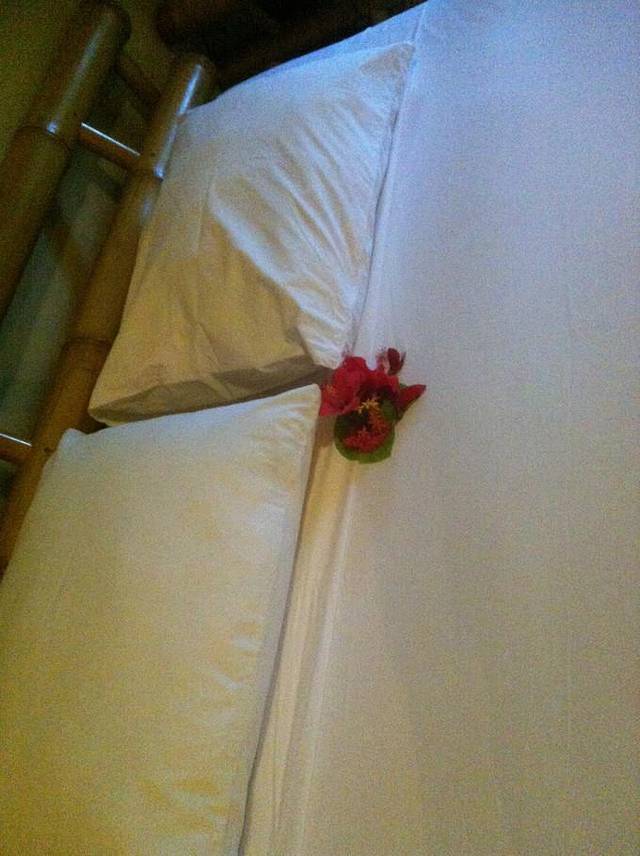 每天服务员会采集庭院里的鲜花放在你的床头。。。贴心啊,听老板讲因为中国游客来罗威纳看海豚的并不多,所以这一带的酒店价格才并不贵