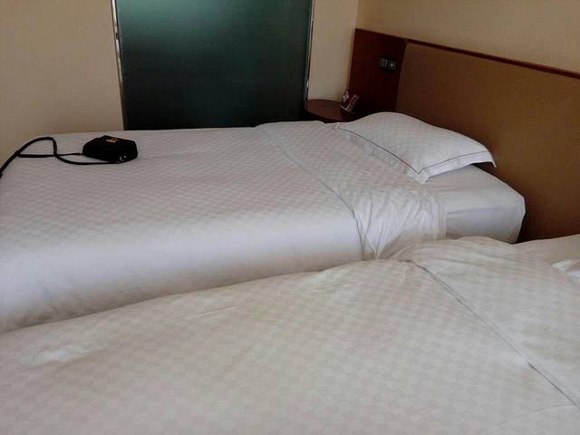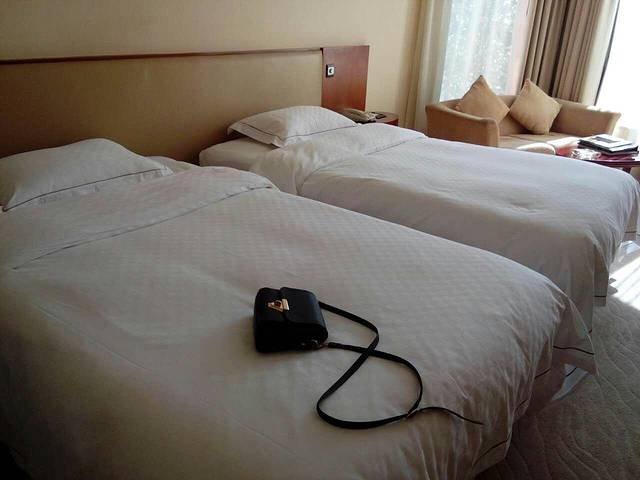 来之前丽丽就在网上把我们住的地方订好了,因为之前她就来过弥勒,相对比我们几个来说她对弥勒比较熟悉。宾馆位于红河卷烟厂里面,绿树环绕,一眼望去,美美的,心情棒棒哒。林荫小道上的鹅卵石亮闪闪的,空气也很好。宾馆位置好找,周围吃喝玩乐很方便。价格实在得不要不要的,两百多块能住上这样的酒店我觉得很是划算的,在我们那边估计五百块都住不上环境这样好的了。宾馆前台人员办理入住速度很快,不排多哈就到我们了,估计也就三分钟不到就帮我们办理好了入住。行李也有专门的人帮我们拿到房间,真是幸福啊。一到房间最吸引我的还是这张大床,嘻嘻,软软的,躺上面实在是舒服,想着不带小孩出来就是少了很多麻烦事,加上是和闺蜜们出来,心情舒畅得很。房间很宽敞,明亮,格局简单,但是看起来让人很舒心,这样的装修风格我喜欢。
