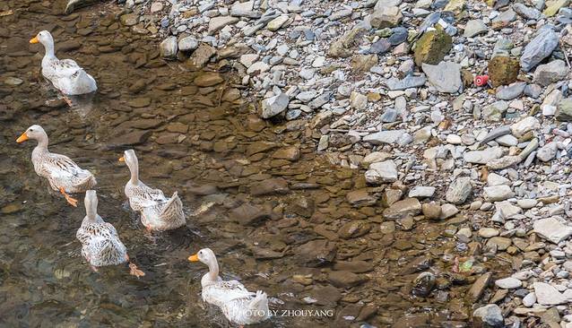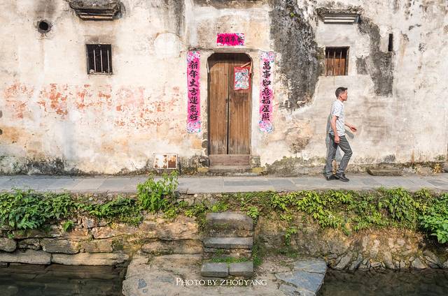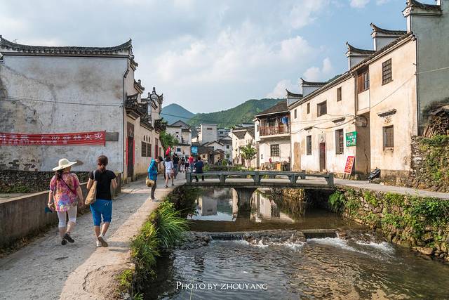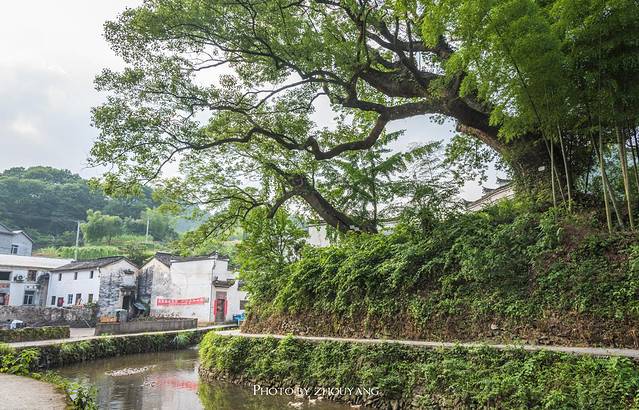 下了车,便沿着溪水,走过一个颓败的建筑,便走入了宛如世外桃源的芹川古村。村口那几棵高耸的古樟树巨擘撑开,绿荫遮天,白墙黛瓦的徽州老宅就如老者沐浴着阳光,一条小溪贯穿村落,溪水清澈,鱼儿畅游,调皮的孩子走进河里追赶着小鸭,嬉戏着河水,一切仿佛回到了童年。