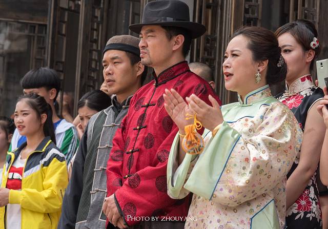 引人注目的便是景区之中那些穿着长袍马褂的演员,他们以旧时的迎宾方式恭迎来此游玩的人们,并带领着游人沿着东大街参观狮城的各个景点。人群簇拥着演员在街道上缓慢的前行,我停下步伐,沿着狮城的东大街望去,不得钦佩狮城的塑造者。