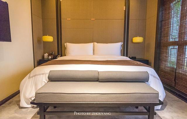 主卧,更是将品质生活推向一个高度,柔软舒适的鸭绒床被至于这样一个古色古香的意境中,多少有点归隐田园的味道。