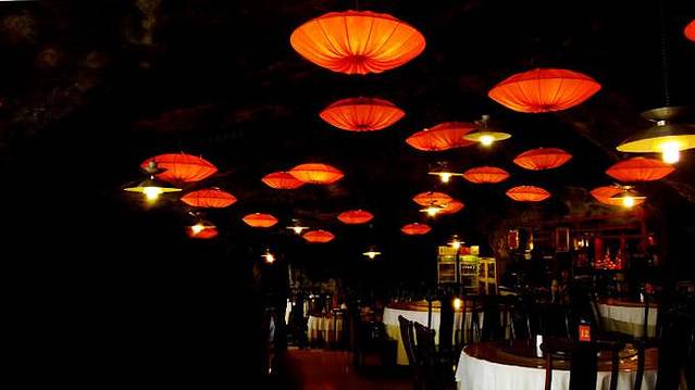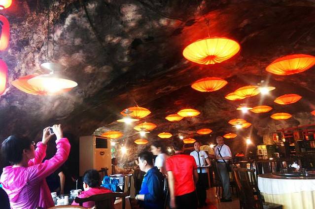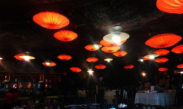 餐厅不光在悬崖上,还在悬崖的洞穴里!洞顶挂上了美丽的灯,看起来美得没法吃饭了都!