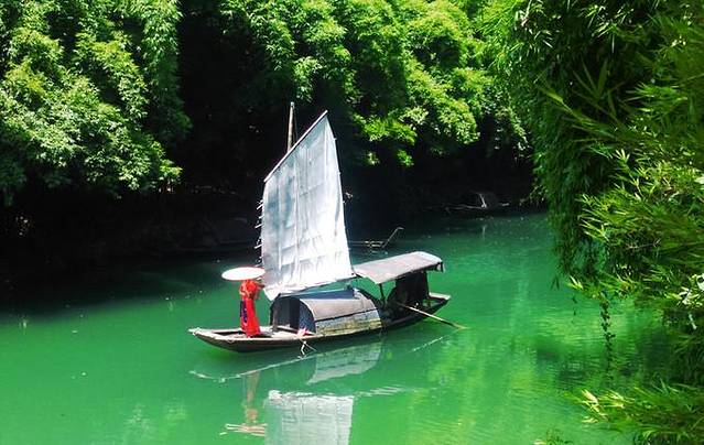 坐在船上,看两遍的风景,偶尔遇到渔船,绿绿的江水,在看山看瀑布几天后,在水上晃悠半天,也是好的!