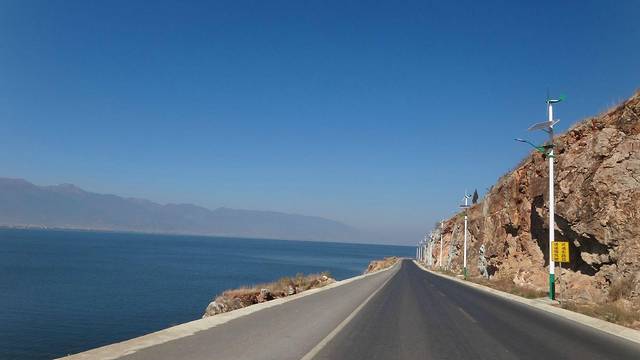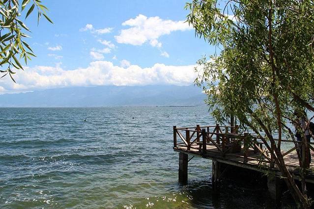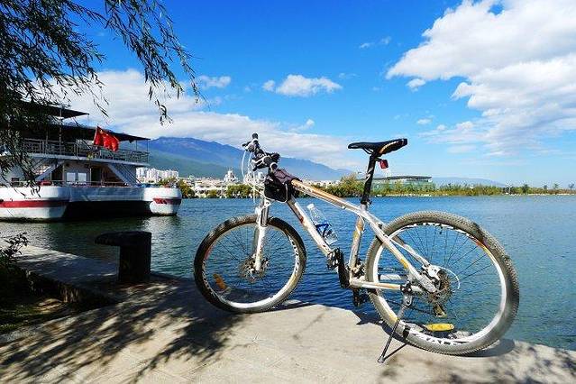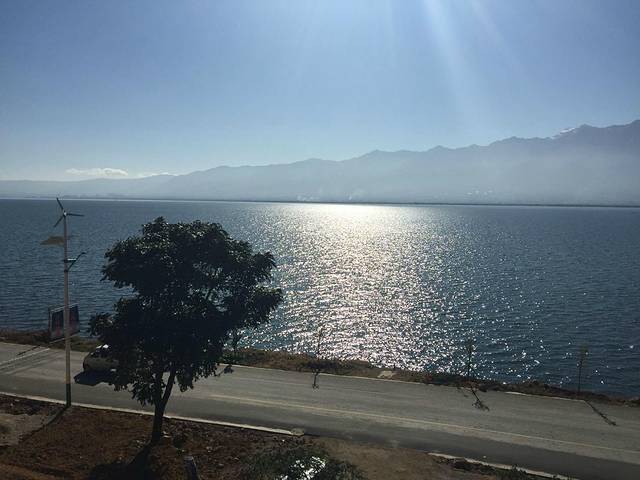 第二天,从酒店租了辆车,从挖色骑到双廊,再从双廊骑回来,一天也不会太赶。沿路是湖光山色,还好骑行这天天气有点阴,否则再美得风景,也要被大太阳晒没了兴致。在大理夏天虽然温度没有上海、杭州那么高,但是紫外线很强,容易把人晒黑晒伤。尤其在洱海边,湖面还会有辐射,紫外线更强,所以怕晒狗还是别环海了,或者可以租四轮的两人坐小型面包车,可以挡住点阳光。