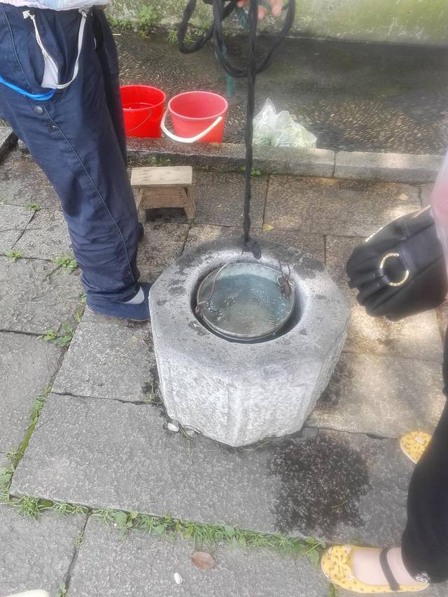 青旅门口的水井,有个大爷在打水,小时候我家门口也有这样一口井,满满的回忆。