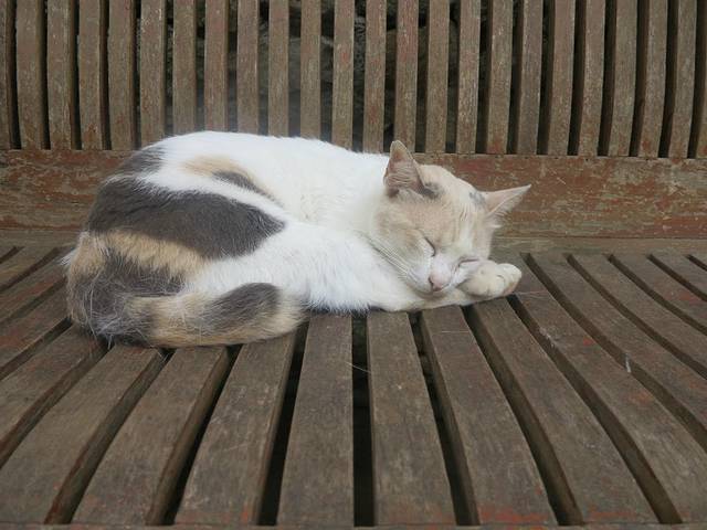 偶遇了一只这个可爱的猫咪,它熟睡的样子感觉像是累了很久呢!无论我们是抱它还是抚摸它,它都在继续睡!