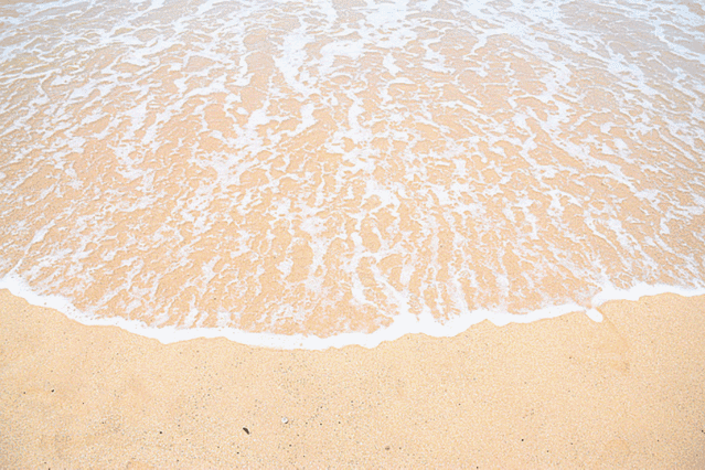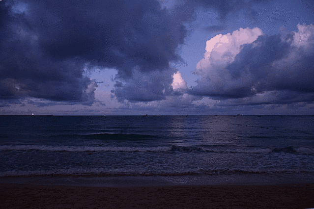 还没全亮的天空和还没苏醒的海,海浪缓缓的