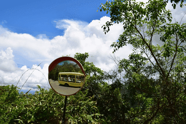 因为山路蜿蜒所以会有很多这样的镜子司机通过凸镜来看视野看不到的地方
