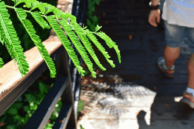坐公交到亚龙湾热带雨林,到站后沿着小道走到景区