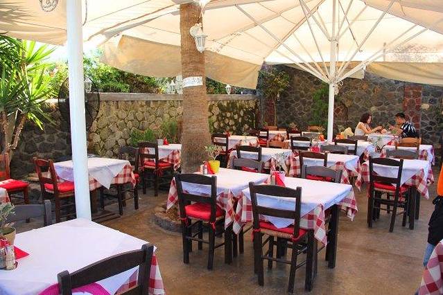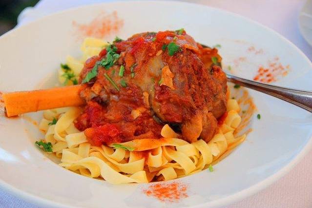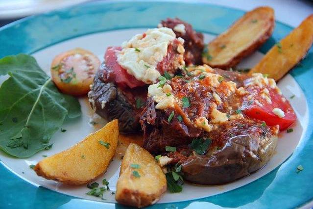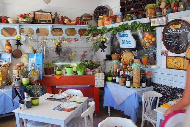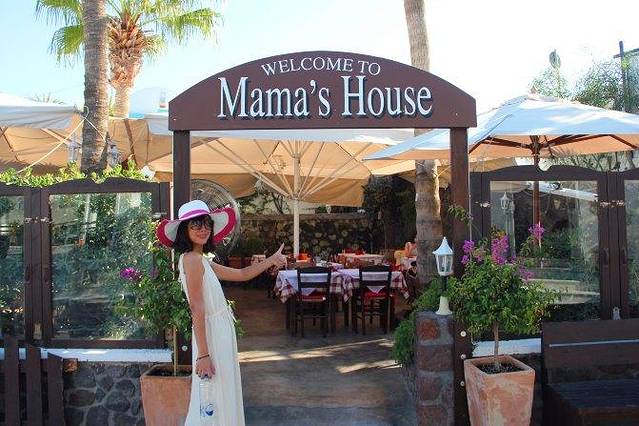 几个沙滩逛完,已经是下午四点多,开车回fira吃东西。找到了很多人推荐的Mama’s house,点了羊腿意大利面和mousaka,果然名不虚传。