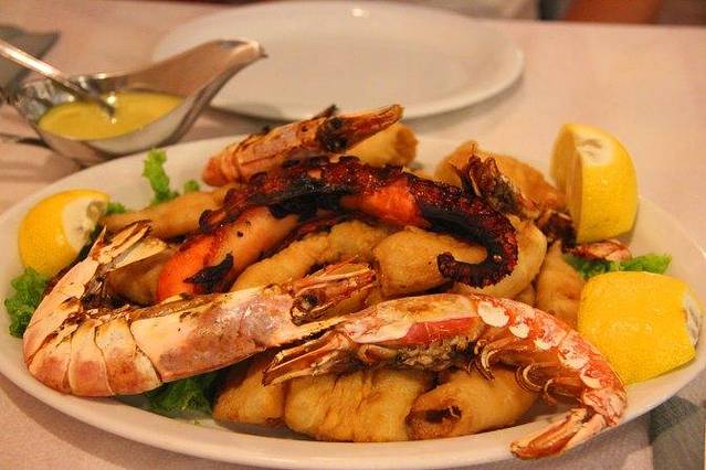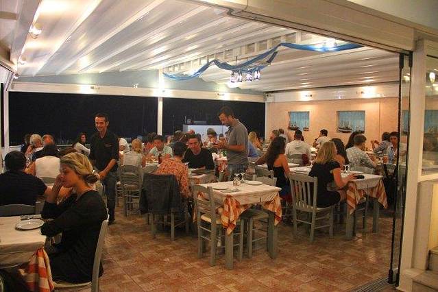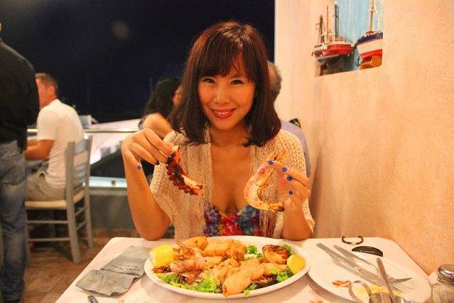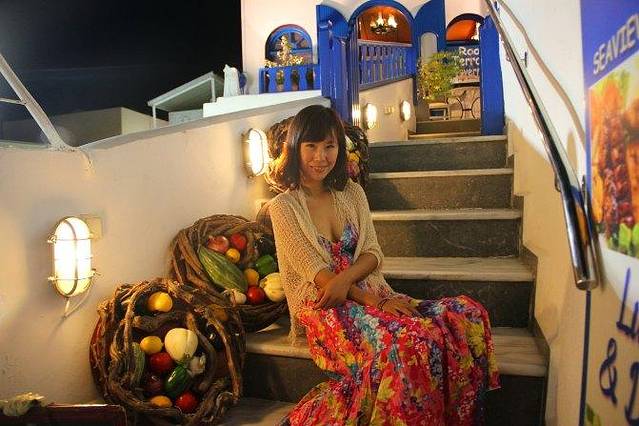 天色渐渐暗了下来,我们沿着海边步道随便闲逛,在一家叫做parea的餐厅就餐。餐厅一楼是厨房,二楼阳台是就餐区。
