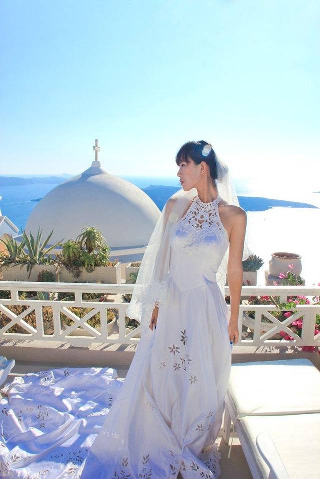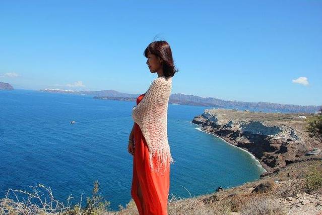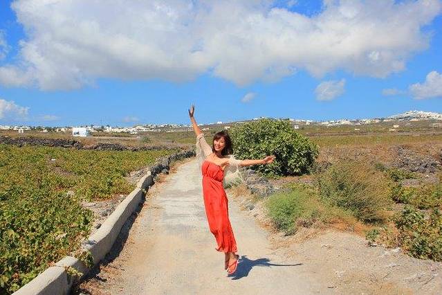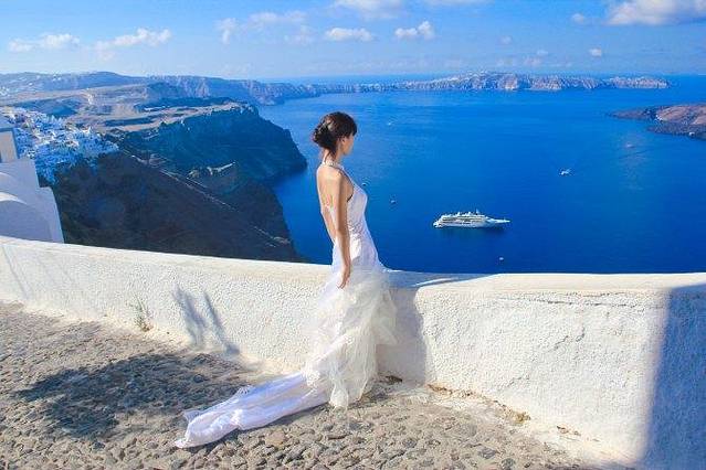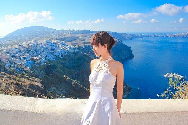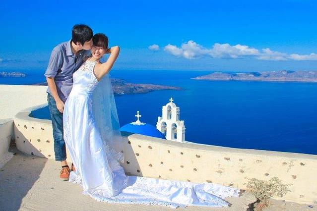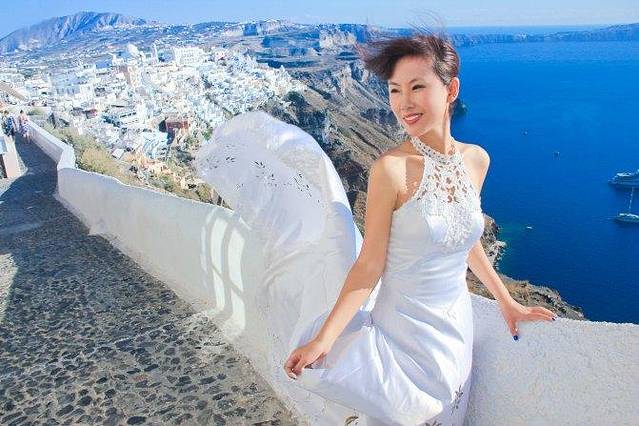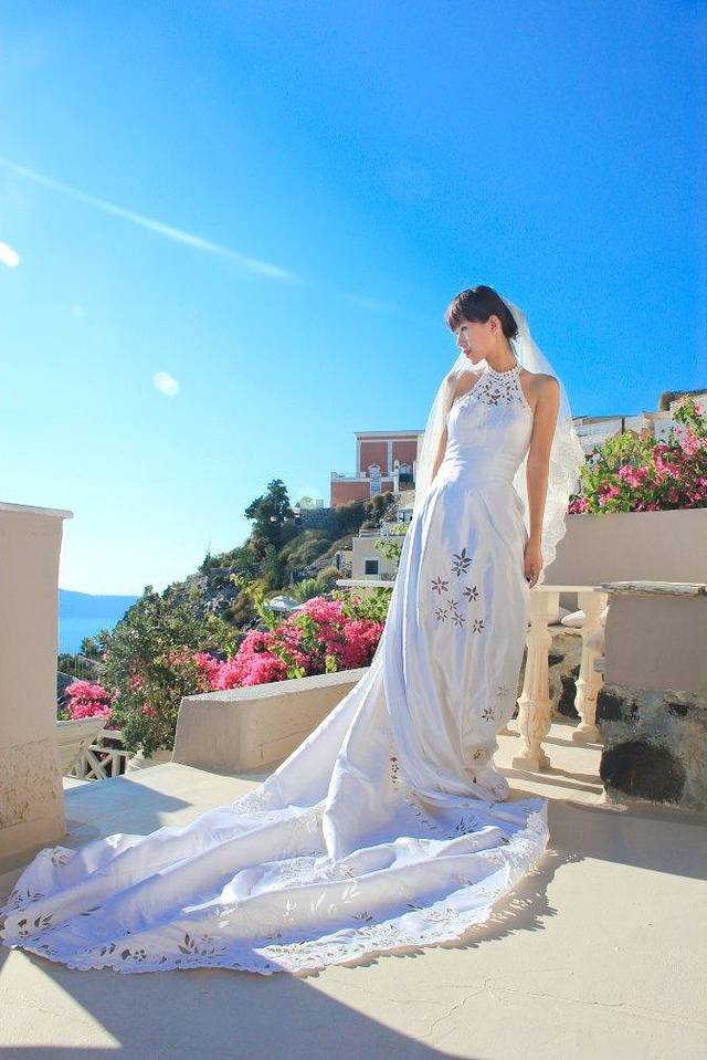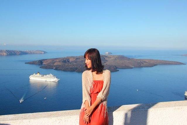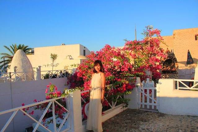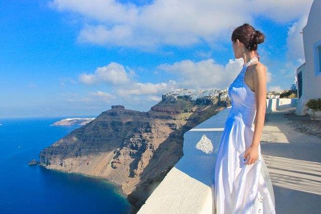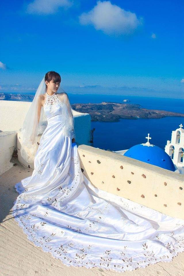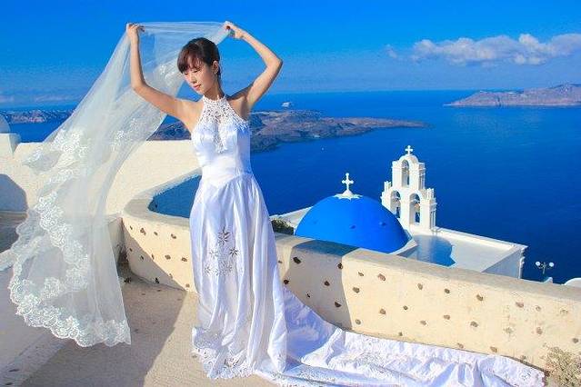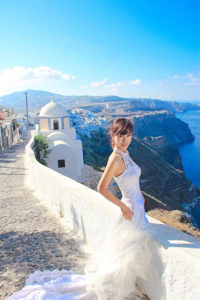 今天是在圣托里尼的最后一天。早上起床,趁着阳光不烈,换上婚纱准备出门寻找著名的蓝顶教堂。按照攻略上的路线,果然顺利的找到了它。美美的拍上一组婚纱大片~