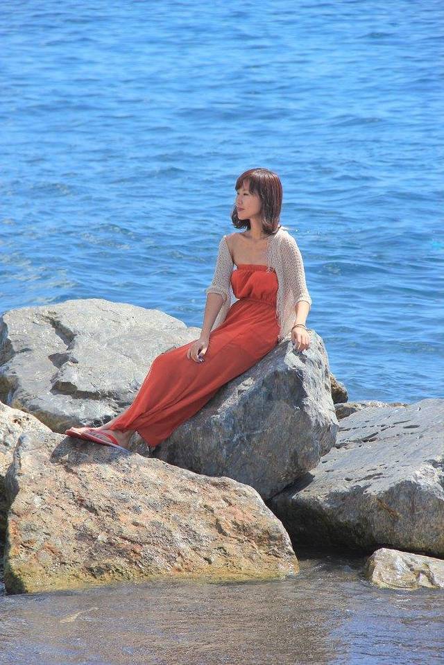 第二站,寻找白沙滩。后来知道白沙滩只能坐船远望,我们误打误撞到了离地图上白沙滩很近的另一处海滩。这里没有沙子,都是光滑的小石头,海滩很小,有很多外国人来这里日光浴和游泳。