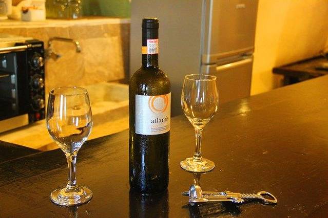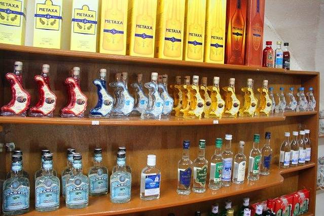 酒足饭饱,在fira镇随意闲逛到晚上。圣托里尼红酒,瓶子是岛的地图形状~拿回家可以装沙子作纪念哦。