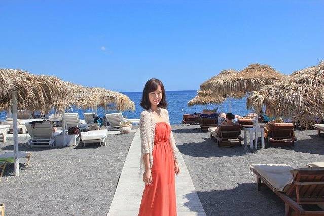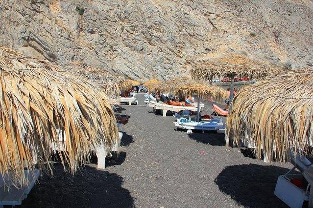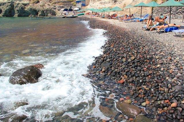黑石滩,比Kamari的水更清澈,石滩人更少。有些地方买了饮料食物等可以不收座位费