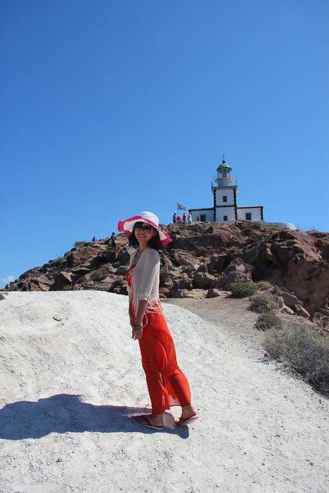 悠闲的吃过早餐后,去镇上租车。今天的计划是环岛自驾游。路线:灯塔-红石滩-黑石滩-oia小镇。上午11点钟,我们在租车行租了一辆尼桑,价格含保险也是60欧。圣岛的路相对于米岛来说惊险程度略低一些,行车道比较宽,而且坡度没有那么陡峭。第一站,圣岛最西南的灯塔。
