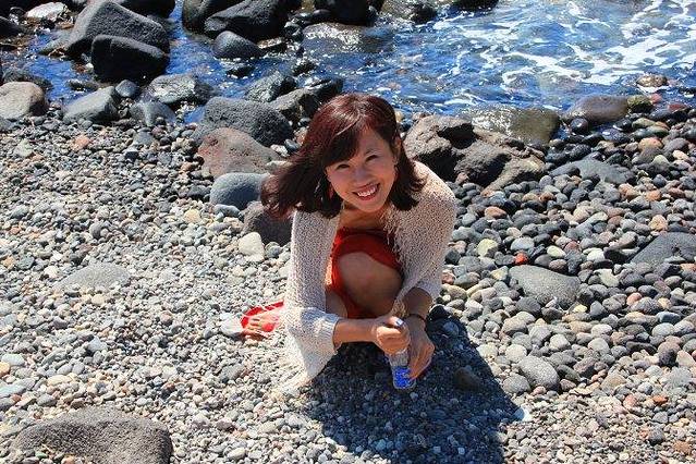 第三站,红石滩。这里周边的岩石是褐红色,沙滩也是褐红色的沙子。