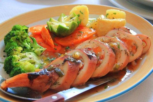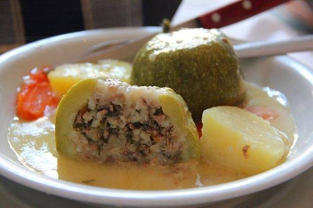 六点钟刚开始提供晚餐,我们是第一桌客人。点了填馅南瓜和鱿鱼塞饭,分别8欧和12欧,老板推荐的鱿鱼塞饭说是他自己的最爱,如果不好吃就blame me。