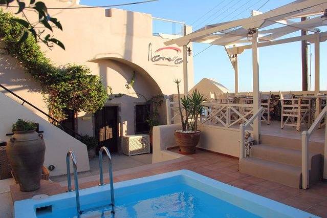 清早起床,出门发现住在同一个院子的隔壁是个中国小伙,在英国留学,带全家来圣托里尼玩。他是第二次来岛上,给我们推荐了租车行和镇子里比较知名的餐厅。我们住的酒店早餐并不像之前的有自助餐厅,而是由你选择酒店的任何地点,厨房做好给你送到。这里的生活果然节奏很慢,早餐是八点半到十点半,在早餐前先出门拍了几张照片。