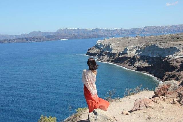 这是圣托里尼的精华所在,每一个前往圣托里尼的游客都必会到此。而且大家都会选择步行在这条道路上,无论你住在Fira,Firostefani或Imerovigli都可以轻而易举的走到这条路上,并开始沿这条路漫游、拍照。在这条路上有无数个路口是通往下方的各种悬崖酒店,这些酒店或大或小,设计精美,布局巧妙,需要你一步步下台阶走近它们,欣赏它们。在你走近它们的同时,你也一步步走近爱琴海,更真切更近的俯瞰湛蓝色的爱琴海和眺望火山岛。全长约3公里,Firostefani位于步行道的中间位置,距离两边小镇各1.5km。如果从Fira作为起点,是向上坡方向走;如果是从Imerovigli开始往Fira是下坡方向。在步行道任何一点都可以俯瞰爱琴海、眺望火山岛、欣赏日落。这里的日落和Oia唯一的不同是太阳是落入火山岛背后,而Oia是可以看到太阳落入海中。