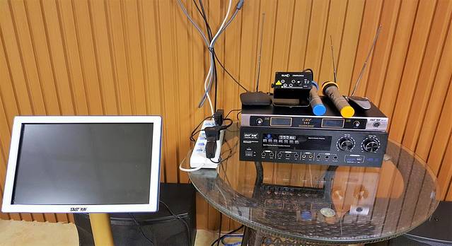我们回到客栈的时候,已经有其他住客在大展歌喉了。K歌设备中有很多新歌,大家可以免费在这尽情表演。