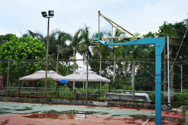 客栈正对面有个篮球场,有精力的年轻朋友不妨来场篮球赛。也许是刚下完雨的原因,球场空空的。近水楼台先得月,完全不用担心球场被其他人霸占了。