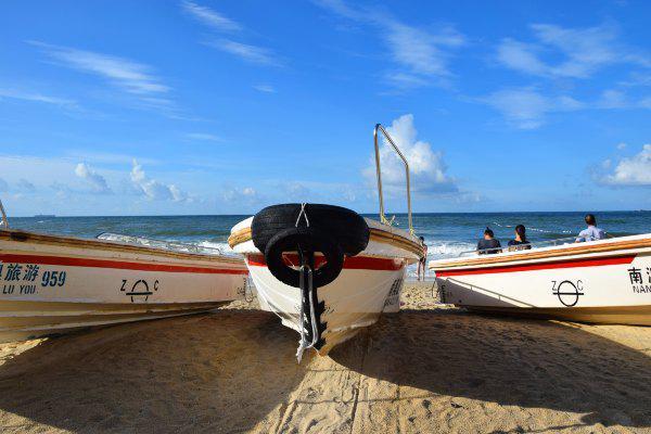 我们只有去看海啦,海是百看不腻的~早上的海,浪潮很大,所有的飞艇还在沙滩上,有种仿佛置身于外国海岛的感觉。看这蔚蓝的天空,真正做到了海天连成了一线,同样的湛蓝。暂没开始劳作的飞艇,悠闲自在地躺在沙滩上休息,待会它们便要来回飞梭在海面上,迎风破浪,现在,只需要好好享受这闲适就好。