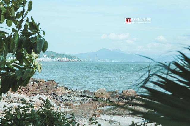 来到礁石公园外的时候,觉得躲在植物中看海景,非常漂亮,不拍还得什么呢?