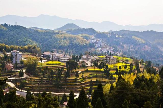 登山起点回望龙头村与来时的道路。
