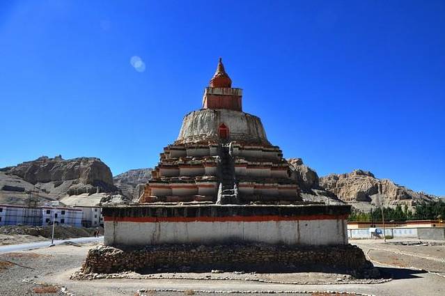 有着900多年历史的托林寺历经了各种自然和人为的破坏,尤其是文化大革命的冲击最为严重。近年来不断重修,主殿已恢复原样,可以看出其设计布局基本是依照桑耶寺的样子。主体建筑象征须弥山,四面的高塔象征四大护法金刚,殿内供奉了许多镏金佛像。幸运的是,虽然建筑有损坏,但是由于在文革期间被当作粮仓,大殿保存的很完好,里面的壁画仍栩栩如生,令人赞叹不已。建议你最好带上手电欣赏,因为殿内灯光比较暗淡。