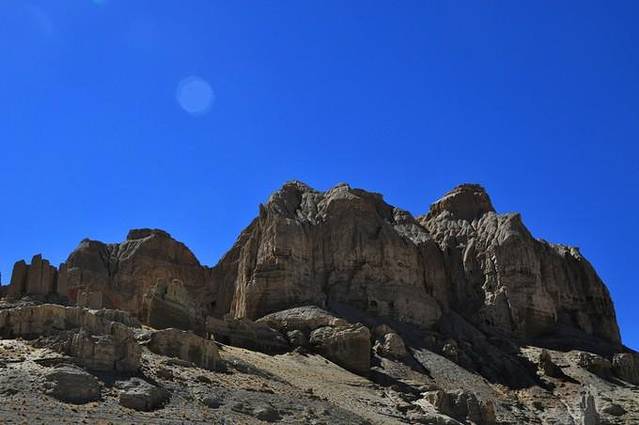在古格的半山腰可以看到这座石楼的遗址,周围的建筑都是土,只有这里是石头砌成,而且是没有修完得,大概有十几米高。没有修完的原因是因为在修的时候,上面的古格王出了变故。据说,由于拉达克人强迫古格的老百姓日以继夜的修石楼,老百姓在下面非常凄苦的唱歌,被国王听到了,国王非常难过,于是做出了决定。
