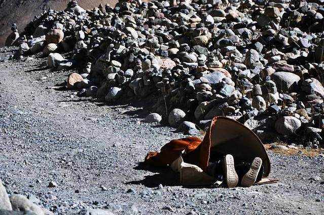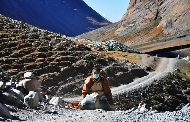 这样的碎石子儿是转山过程中最好走的一段了。所以,可见登山鞋对于来转山的朝圣者来说是多么重要。