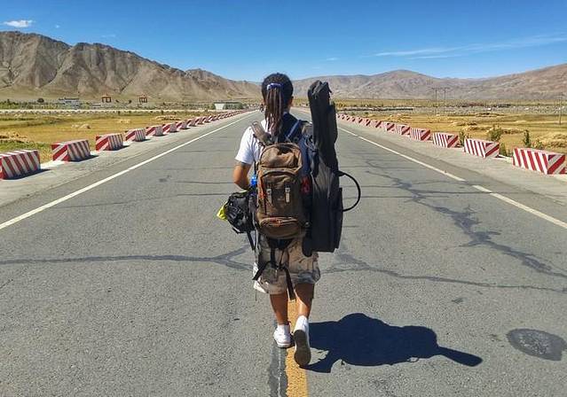 在拉孜县城和四川大哥道了别后,继续沿着219国道向西走,一边走一边拦车。再往西走,这样宽广的马路就越来越少了。