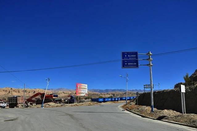 从县城到古格王朝还有15公里的路程,走路的话会很累得。我们搭上了一辆在古格王朝边上施工的大翻斗车,虽然开的很慢,但是总要快过走路。
