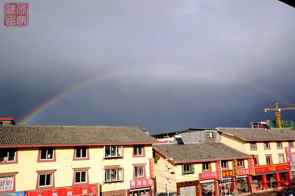 下午4点半到的若尔盖县城找到宾馆休息,5点左右发现窗外的大彩虹