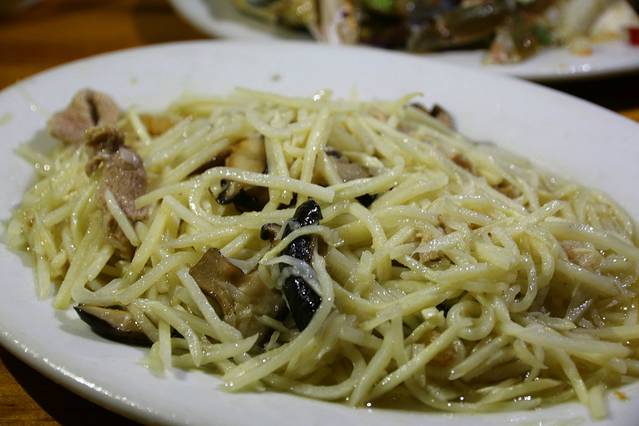 据说这个都是老板自己一个一个挑出肉来的,一大盆肉,得是花了多少时间和功夫。用勺子舀上一勺,倒嘴巴里慢慢嚼,爽。