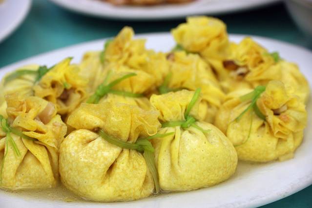 很特别的造型,一个个的小福袋,里面包着肉碎、香菇等等好几种东西,很特别,味道也是不错的。