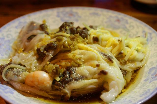 粉皮,用自己种的大米打磨成浆,再蒸出来。配料有分量超足的牛肉、笋、虾。每一口要下去,肠粉的层次丰富,啖啖都有肉。