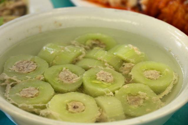 酿节瓜。吃多了煎炸热气的东西,来上一份清火的节瓜汤,降火功效妥妥的。