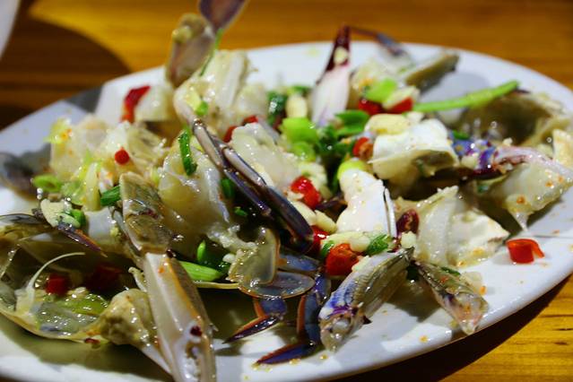 生的螃蟹,淋上独家的酱汁,一口咬下去,蟹肉清爽甜嫩,一点腥味都没有哦。