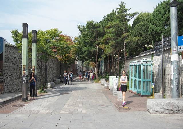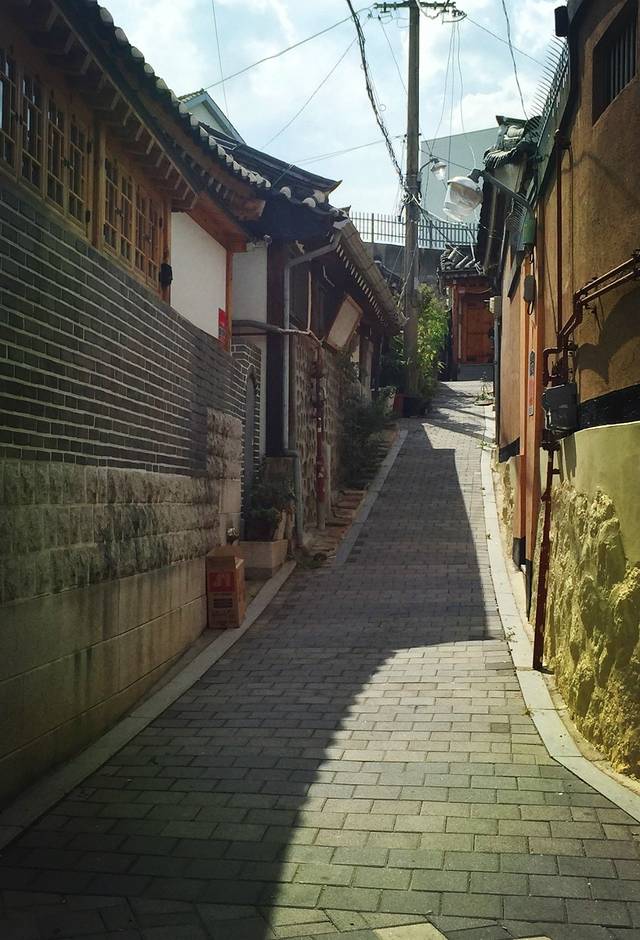 北村是适于步行的村庄。小巷路如迷路一般纵横交错、层层叠叠,充满浓浓的历史气息,这里留下了人们的生活痕迹,且到处散布着珍贵的文化和宝物。这条路的对面就是仁寺洞,与北村遥遥对望。