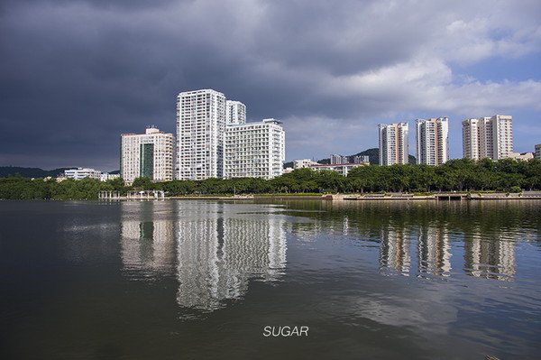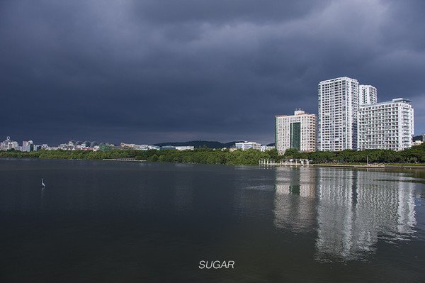 转眼风雨欲来。远处看到白鹭就站在水里。