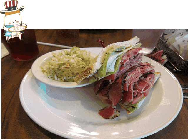 浏览了一些景观,肚子也饿了,来一顿正宗的洛杉矶美味吧。在比弗利山庄,有一家1945年开业的Nate’n Al餐厅,来一份香薰牛肉三明治吧。