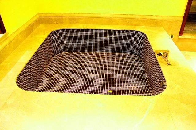 泳池内的马赛克配有LED灯,晚间点亮后泳池便如布满星辰的夜空般璀璨。