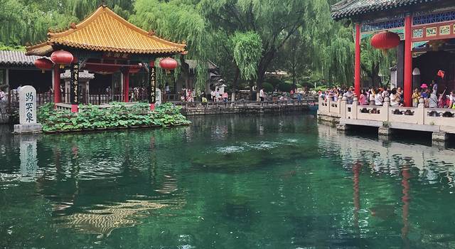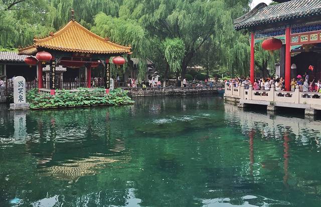 济南是泉城,到处都是泉,有趵突泉、黑虎泉、五龙潭、珍珠泉四大泉群,据说大明湖就是这几个泉水汇集而成的。我只去看了号称“天下第一泉”的趵突泉。