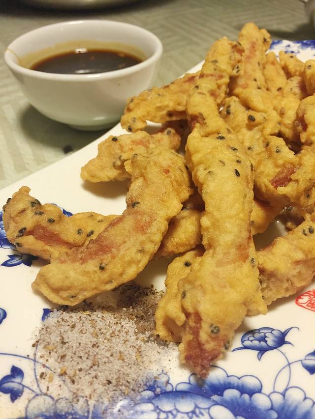 里脊两吃,里脊裹面粉时加了黑芝麻,所以也特别香,可以蘸糖醋汁或椒盐,不过还是觉得直接做成糖醋里脊会更入味一点。