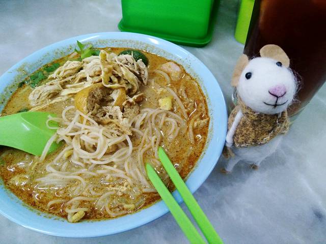 ▲怡丰叻沙,主食是粉丝,配上鸡肉香菜,味道还不错。