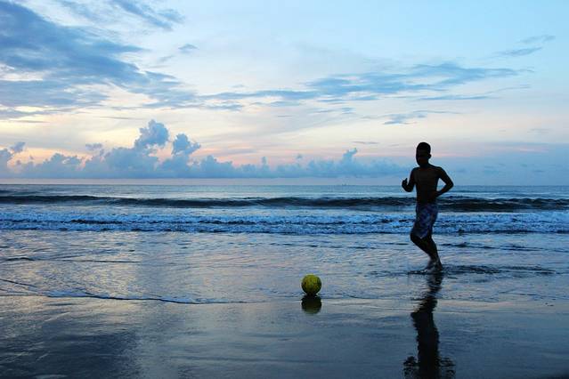 细软的沙滩上,当地小孩踢着足球,突然好羡慕他们可以每天落入如此仙境。