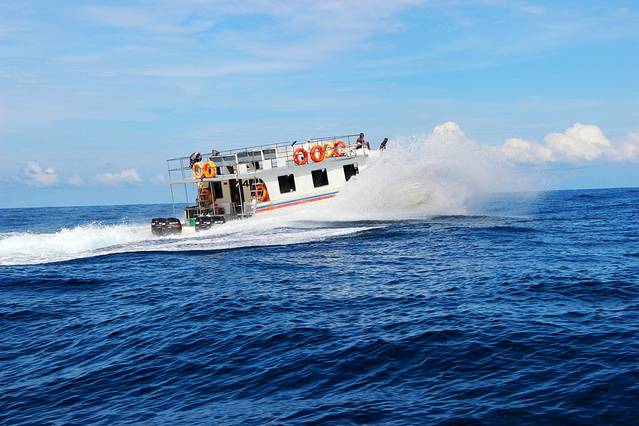 然后再改乘快艇,大约1个小时左右的船程才能抵达美人鱼岛。